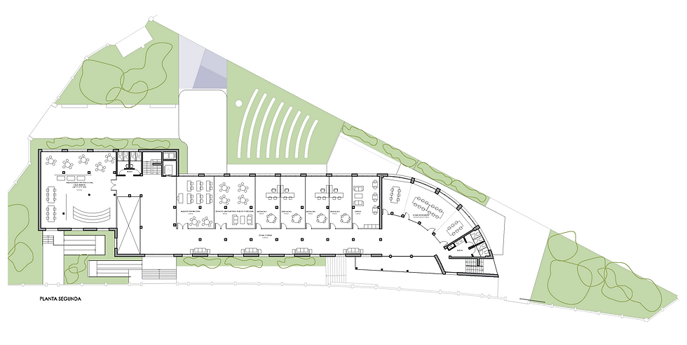 El proyecto de rehabilitación del antiguo centro de salud de Ciudad Rodrigo propone su transformación en el nuevo Centro de Innovación Social “La Estrella”, un espacio abierto al emprendimiento, la formación y la participación ciudadana. La intervención aprovecha la estructura existente para crear un edificio contemporáneo, reorganizando sus espacios en torno a un nuevo acceso desde la parcela que conecta las distintas áreas de uso. El programa combina salas de congresos, coworking, aulas de formación, talleres, una escuela de hostelería y una ludoteca, integrando zonas exteriores ajardinadas y aulas al aire libre. La nueva envolvente en GRC, la cubierta ajardinada y los sistemas de instalaciones incorporados aportan una imagen renovada y sostenible al edificio.